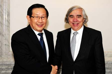 全國政協(xié)副主席、科技部部長萬鋼與美國能源部長莫尼茲