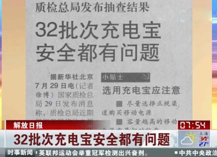 國家質檢總局29日發布消息稱,質檢總局近期組織開展了移動電源產品質量安全風險監測,共從市場上采集樣品32批次,對熱濫用、過充電、短路等項目進行了檢測。結果表明,32批次產品均存在質量安全風險。