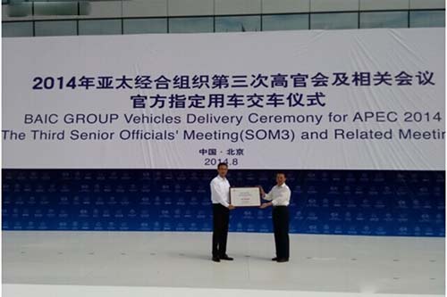 “2014年亞太經(jīng)合組織第三次高官會(huì)官方指定用車是北汽集團(tuán)交付的首批車輛,其中包括旗下自主品牌紳寶D70轎車50輛,蒙派克S商務(wù)車40輛,歐輝客車15輛,共計(jì)105輛。” 5日,在“2014年亞太經(jīng)合組織第三次高官會(huì)官方指定用車交車儀式”上,北汽集團(tuán)黨委副書記李志立說。