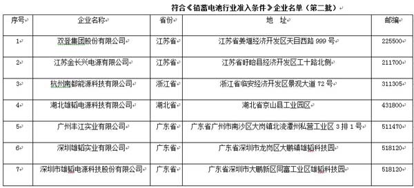 符合《鉛蓄電池行業準入條件》企業名單(第二批)