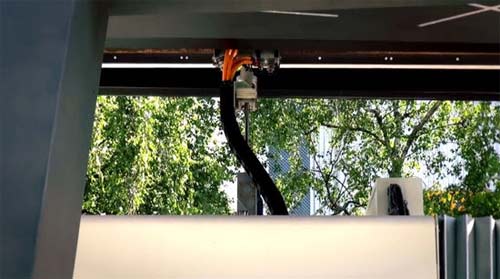 當電動巴士駛入站點,TOSA 系統就會通過機械臂將巴士頂部的電池設備和站點的充電裝置連接起來。只需15秒,電動巴士就能補充抵達下一個站點所需的電量。