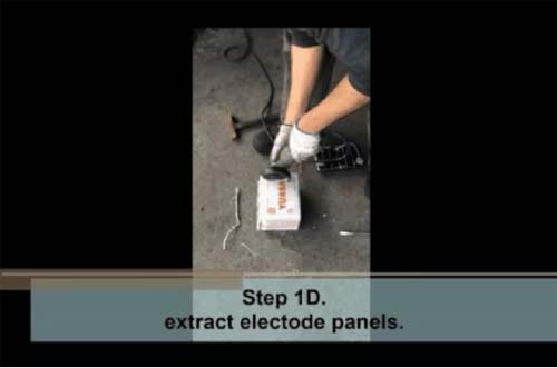 視頻中展示了他們是如何使用一把鋸子來從舊電池當中“收獲”電極板,然后再將其變成太陽能電池的。在制作過程當中,他們甚至把陰極二氧化鉛烤了5個小時。研究人員表示,他們從一塊汽車電池當中所收集的材料可以制作出為30個家庭所供電的太陽能電池板。