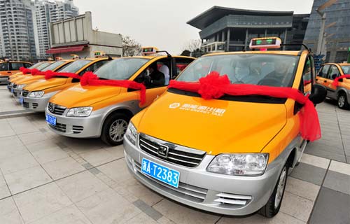 8月24日清晨6點半,在教工路西湖電子集團總部的園區內,10輛西湖新能源電動出租汽車舉行發車儀式,其中有兩輛車正式上路營運,打車費用與普通出租車一樣。