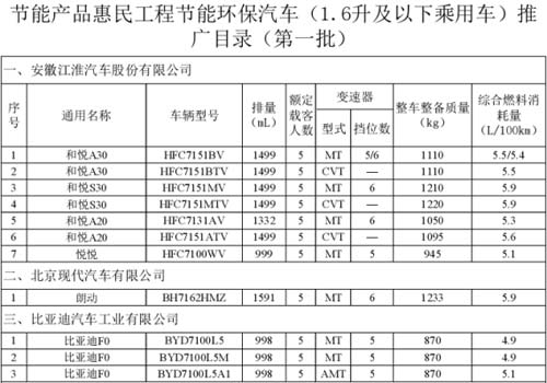 9月11日,國家發(fā)改委、工信部和財政部聯(lián)合發(fā)布新一輪關于開展1.6升及以下節(jié)能環(huán)保汽車推廣工作的通知,并發(fā)布“節(jié)能產品惠民工程節(jié)能環(huán)保汽車(1.6升及以下乘用車)推廣目錄(第一批)公告。比亞迪、上海大眾、一汽大眾、北京現(xiàn)代、長安馬自達等28家企業(yè)入圍新一輪推廣目錄。