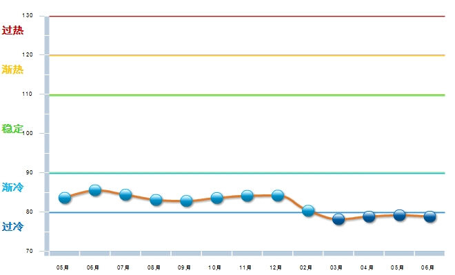 圖1 :2013.5—2014.06電池行業主營業務收入景氣指數變化態勢