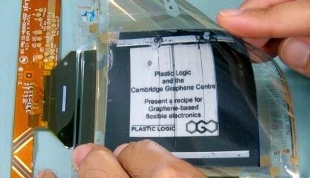 這款原型產品是由劍橋大學石墨烯研究中心和英國公司Plastic Logic共同生產的。它是一款有源矩陣電泳(active matrix electrophoretic)顯示屏,這種技術通過使用電場重新排列溶液上的懸浮粒子,顯示出圖像。這種顯示屏和如今的電子閱讀器顯示屏很相似,不過它沒有采用玻璃材質,而是選用了軟塑料,當然,這也是首次將石墨烯技術應用在基于晶體管的電子設備上面。