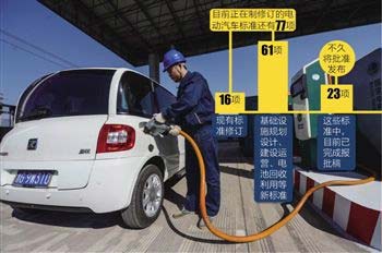 目前正在制修訂的電動汽車標準還有77項,其中現有標準修訂16項,基礎設施規劃設計、建設運營、電池回收利用等新標準制定61項。這些標準中,目前已完成報批稿23項,不久將批準發布。