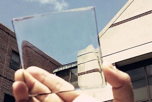 他們所開發的透明太陽能電池板功能上和你看到的普通太陽能電池板一樣,也使用光伏路條來收集光能。但不同的是,這塊電池板采用的有機分子材料能夠吸收肉眼看不到的紅外線,使得面板本身接近全透明。