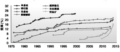 鈣鈦礦自2009年以來開始被用于太陽能電池研究,并被世界各地的多個實驗室和企業反復驗證。歷時五年多的研究里,鈣鈦礦的電池效率屢次翻番,并逐漸引起了業界的注意。鈣鈦礦太陽能電池不僅擁有第一代太陽能電池高轉化效率的特點,還有第三代太陽能電池薄膜、柔性化的特點,可用于溶液法卷對卷生產。因此,鈣鈦礦太陽能電池被認作是最有前景的“冉冉新星”。