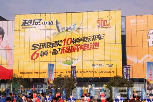 本屆交易會上超威電池的巨幅廣告