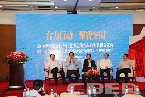 工信部消費品司副司長高延敏在2014年度中國自行車協會助力車專業委員會年會進行主旨發言