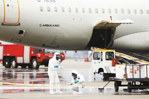 14時39分,市環保局輻射應急處置人員和市輻射環境監督管理站應急救援隊伍到達現場,分別排查機組和地面人員,并探明污染區域和范圍,還專門對飛機周圍更大范圍進行場地輻射監測和空氣污染監測。
