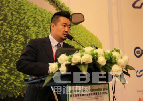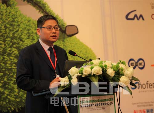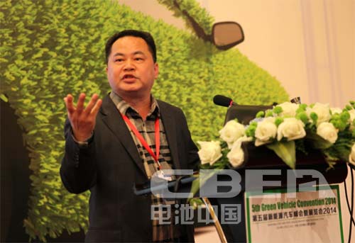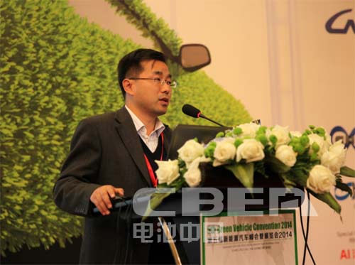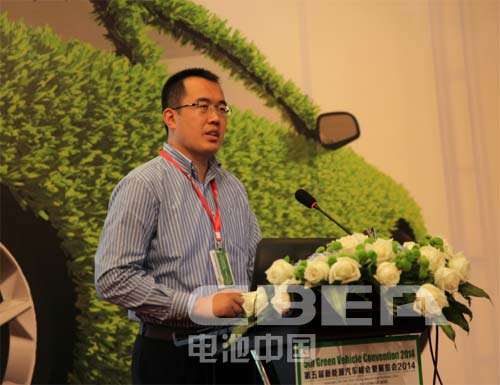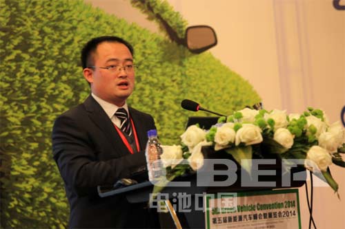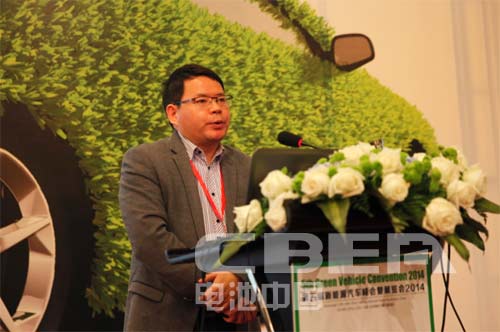 圖為北京汽車集團有限公司新能源汽車管理部高級工程師王智文作《新能源發力元年的北汽集團純電動汽車產業布局》的主題演講