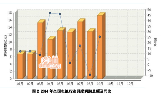 2014年1-9月電池行業利潤總額分析:利潤總額快速增長