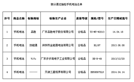 [摘要]天津市市場和質量監督管理委員會官網18日日發布的手機電池抽檢公告顯示,捷優 、百仕特 、萬達通等標稱品牌手機電池被檢出不合格。