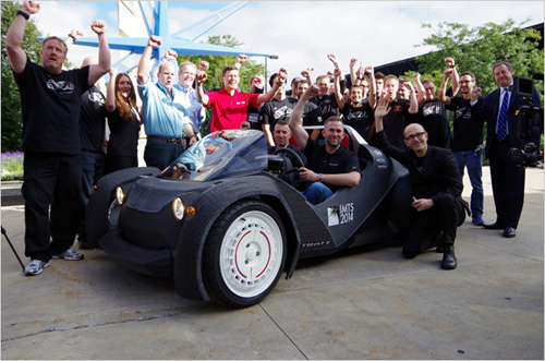 需要說明的是,Strati并不是世界上第一輛3D打印汽車,也許有人知道,沒錯,那就是于去年就聲名全球的Urbee 2。這是一輛由設計公司KOR Ecologic、直接數(shù)字制造商RedEye On Demand以及3D打印制造商Stratsys合作打造的高燃油效率混合動力車。Urbee 2包含超過50個3D打印組件,制造用時2500個小時。