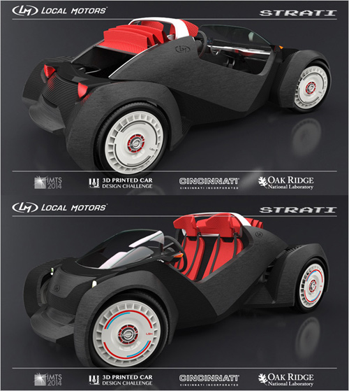 Strati由Local Motors汽車公司打造。Local Motors是一家專門制造新型前沿汽車的美國企業(yè),公司位于亞利桑那州,目前在美人氣相當旺。