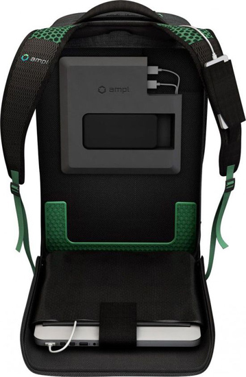 在背包內部會發現7個連接端口,內置18.5Wh容量電池,能夠為你的智能手機充滿2-3次電。此外AMPL還提供兩種不同尺寸的匹配電池,平板模式(TabletBoost)配備18.5Wh,,筆記本模式(LaptopBoost)配備55Wh。背包的售價為$299,擴展的平板電池為$59,筆記本型號電池為$139,整套價格為$179。