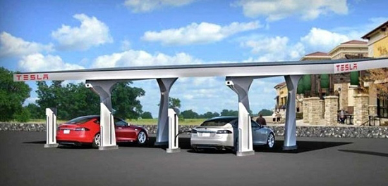 特斯拉曾在其宣傳活動(dòng)中為人們描繪了這樣一幅場(chǎng)景:特斯拉車主們可在任意超級(jí)充電站享受免費(fèi)的充電服務(wù),而Model S補(bǔ)充80%的電能花時(shí)不到40分鐘,最有意思的是這些電能都來自于安裝在超級(jí)充電站頂棚或者周邊建筑屋頂?shù)墓夥l(fā)電組件。