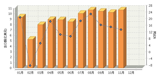 根據(jù)海關(guān)總署公布數(shù)據(jù),2014年1~11月,全國(guó)電池行業(yè)累計(jì)完成出口額同比增長(zhǎng)15.36%。其中:11月份完成出口額同比增長(zhǎng)15.17%。