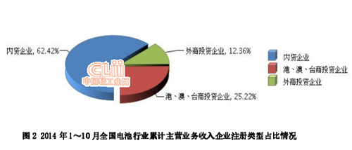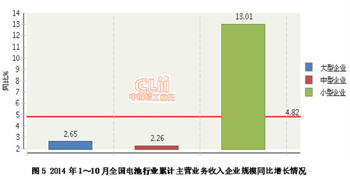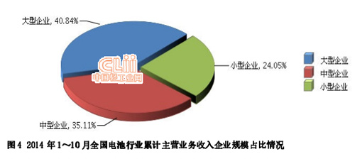 [摘要]2014年1-10月,全國電池行業累計完成主營業務收入同比增長4.82%。其中:10月份完成主營業務收入同比增長-3.41%。