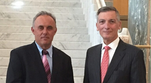 澳大利亞液態金屬蓄電池研究公司首席執行官戈登-海恩茲(GordonHinds)和美國的聯合發明者唐納德-薩杜威(GordonHinds)教授
