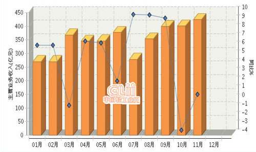1、11月主營業務收入同比基本持平