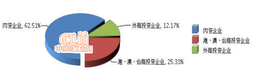 從企業注冊類型看,內資企業主營業務收入占比大增速快。內資企業完成累計主營業務收入占62.51%,同比增長7.6%;港、澳、臺商投資企業完成累計主營業務收入占25.33%,同比增長-1.56%;外商投資企業完成累計主營業務收入占12.17%,同比增長1.26%。
