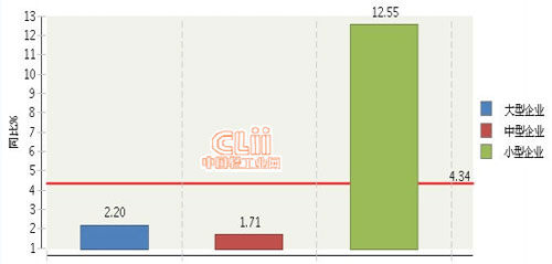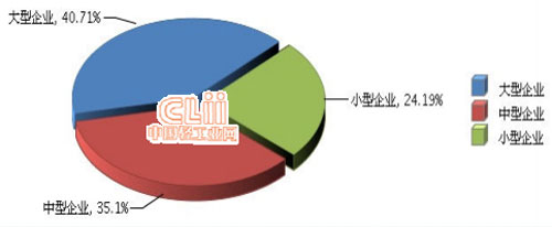 從企業規模看,小型企業增長速度加快。大型企業完成累計主營業務收入占40.71%,同比增長2.2%;中型企業完成累計主營業務收入占35.1%,同比增長1.71%;小型企業完成累計主營業務收入占24.19%,同比增長12.55%。