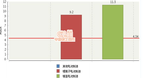 2014年1~11月,其他電池制造完成累計主營業務收入占52.64%,同比增長0%;鋰離子電池制造完成累計主營業務收入占37.68%,同比增長9.21%;鎳氫電池制造完成累計主營業務收入占9.68%,同比增長11.32%。