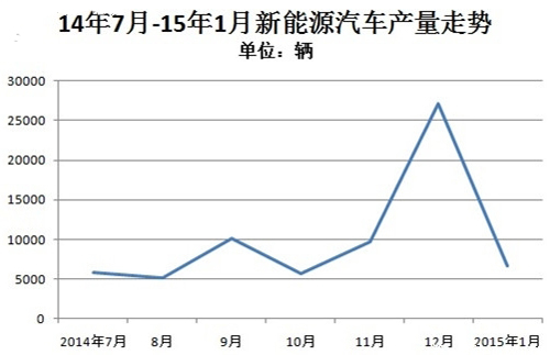 工信部2月4日發(fā)布了2015年1月份新能源汽車產(chǎn)量。根據(jù)機動車整車出廠合格證統(tǒng)計,2015年1月,我國新能源汽車生產(chǎn)6599輛,同比增長近5倍。 雖然環(huán)比2014年12月2.7萬輛的產(chǎn)量回落明顯,但這與前兩年中國新能源汽車年底沖高、年初回落的走勢基本一致,在補貼退坡的頭一個月產(chǎn)量還有如此增 長,也給2015年開了一個好頭。