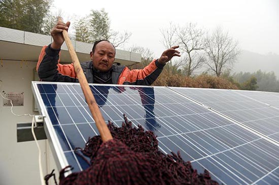 2014年3月4日,安徽省金寨縣第一臺并網發電的光伏扶貧電站,在方榮軍家正式接通發電。