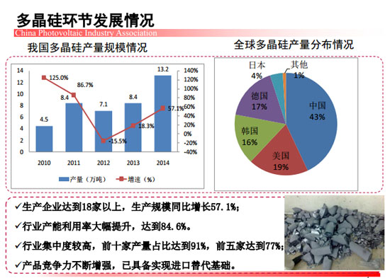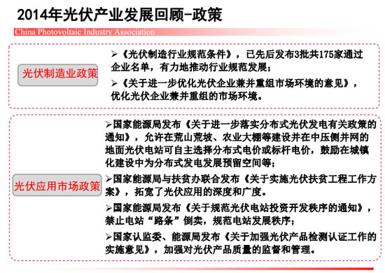 [摘要]近期,中國光伏行業協會秘書長王勃華在“光伏行業發展與投資分析——2014年回顧與2015年展望”研討會上總結了去年我國光伏制造端以及應用市場的整體情況。