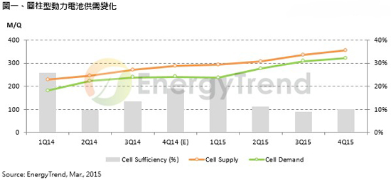 TrendForce旗下綠能事業(yè)處EnergyTrend研究經(jīng)理呂理舜表示,隨著環(huán)保意識的興起,電動自行車與電動汽車在市場的普及度逐漸增加,亦帶動圓柱型動力電池在移動載具需求將從2014年的1.11億顆增長至2015年1.45億顆,年增長30%;而整體圓柱型動力電池需求將從去年的8.82億顆增長至今年的11.71億顆,年增率為32%。