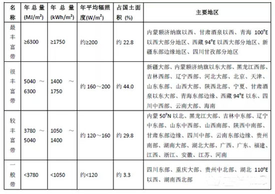 答:我國太陽能總輻射資源豐富,總體呈“高原大于平原、西部干燥區(qū)大于東部濕潤區(qū)”的分布特點。其中,青藏高原最為豐富,年總輻射量超過1800kWh/㎡,部分地區(qū)甚至超過2000kWh/㎡。四川盆地資源相對較低,存在低于1000kWh/㎡的區(qū)域。
