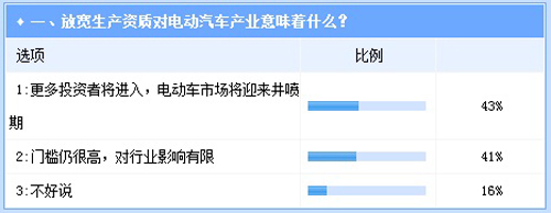 另外,還有一個利好的大背景,在多重鼓勵政策的刺激下,國內(nèi)新能源車市場發(fā)展已經(jīng)明顯提速,而隨著更多投資者的持續(xù)涌入,電動汽車行業(yè)在今后兩年來迎來爆發(fā)并非不可能,在調(diào)查1中,持此觀點(diǎn)者占比43%。