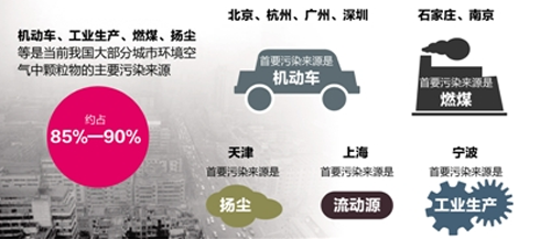 目前,第一階段9個城市已經全部完成源解析工作。研究結果表明,機動車、工業生產、燃煤、揚塵等是當前我國大部分城市環境空氣中顆粒物的主要污染來源,約占85%—90%。其中北京、杭州、廣州、深圳的首要污染來源是機動車,石家莊、南京的首要污染來源是燃煤,天津、上海、寧波的首要污染來源分別是揚塵、流動源、工業生產。各地根據源解析成果有針對性地調整大氣污染防治措施,為促進空氣質量持續改善提供了重要支撐。