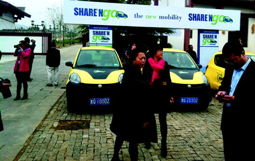 使用手機預(yù)約或者到租車點刷卡,就可以將電動汽車開走,還可以使用手機隨時隨地還車,每分鐘租金僅需0。3元,租用一天最多60元。山東省臨沂市在國內(nèi)率先推行“電動環(huán)保先行城市”概念,沂南縣也成為全國首個推出“分時租賃中的電動汽車共享”模式的縣。