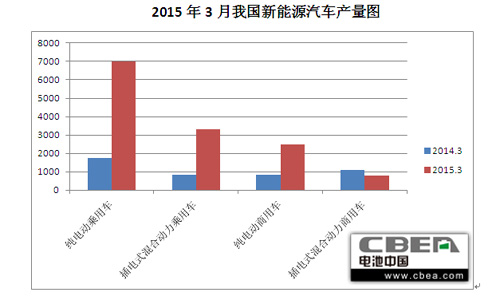 2015年3月新能源汽車產量突破1.3萬輛