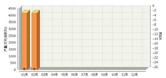根據國家統計局公布數據,2015年1-2月全國堿性蓄電池行業累計完成產量同比下降25.64%。其中:2月份完成產量同比下降25.64%。2015年全國堿性蓄電池行業月度產量及同比如圖所示。