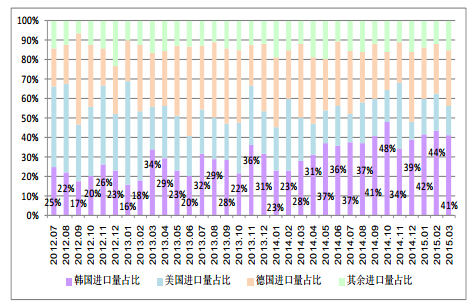 圖4 自韓國(guó)進(jìn)口量占比日漸增加