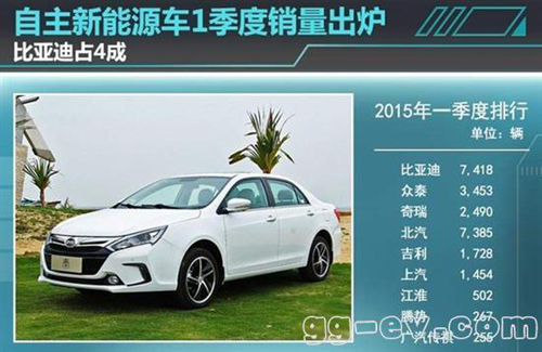 近日,乘聯會公布了今年一季度自主品牌的銷量,比亞迪獨占鰲頭,以7,418輛奪得冠軍。去年比亞迪全年新能源車銷量為1.8萬輛,而今年一季度就完成了去年總銷量的4成。在新能源銷量的前三甲中,眾泰以3,453輛位居第二讓人側目。排在第三位的是奇瑞,一季度共銷售新能源車2,490輛。緊隨其后的是北汽和吉利。北汽E系純電動車一季度累計銷售1950輛,是一季度銷量最高的純電動車。6—9名依次為上汽乘用車、江淮、騰勢、廣汽傳祺。對于下一階段的發展方面,各大車企均已有規劃。