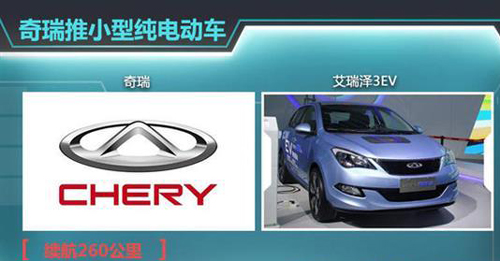 奇瑞去年發布的eQ因為低廉的售價贏得了很多消費者的歡迎。一季度累計銷售1,061輛。在今年的上海車展上,奇瑞發布了高一級別的艾瑞澤3EV,該車續航里程大于260km,預計將于2016年年初上市。艾瑞澤3EV基于艾瑞澤3打造,是一款小型車,主要目標用戶是年輕消費者,電動版作為艾瑞澤3的衍生車型,無疑是奇瑞拓展新能源市場的又一力作。