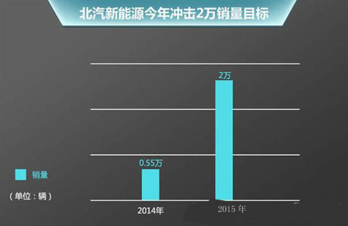 2014年3月份北汽第一款純電動轎車E150EV面向私人市場上市,并以全年5510輛的銷量奪得純電動乘用車銷量冠軍。今年一季度北汽E系電動車累計銷售1950輛,幫助北汽躋身新能源車銷量第四名。目前,北汽新能源已擁有基于北汽E系列的E150EV、EV200,基于紳寶D70的ES210以及三款新能源產品。北汽新能源總經理鄭剛表示:未來兩年內北汽新能源將會推出8款新車。其中,2015年規劃內推出的車型代號為C10IB、C50EB、C71GB,分別為微型車、緊湊型和一款中型車。今年北汽新能源的目標是實現2萬輛以上銷量。
