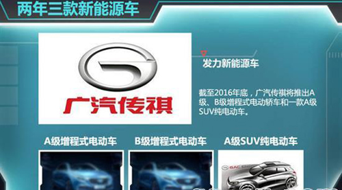 在9大品牌中廣汽傳祺是較晚進入新能源車市場的品牌。在去年的廣州車展,廣汽傳祺GA5 REV增程式電動車正式上市。今年一季度,該車累計銷售255輛。廣汽集團總經理曾慶洪表示,預計在2015年底至2016年底,廣汽自主品牌更具市場競爭力的A級和B級增程式電動轎車、A級SUV純電動車將逐步投放市場。根據廣汽傳祺計劃,在2020年前新能源車年銷量將達10萬輛。
