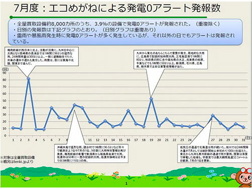 另外,NTT Smile Energy還注意到,除了這種惡劣天氣的影響之外,平日里每天檢測到的發電停止情況基本沒有低于10件。這表示,無論天氣情況如何,總有一定數量的光伏發電系統會因某種原因停止發電。
