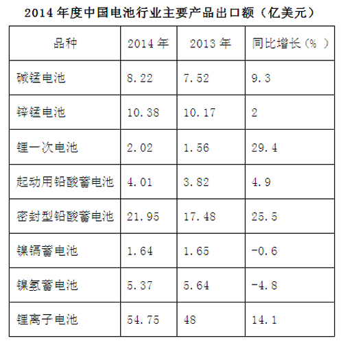 出口方面,密封型鉛酸蓄電池2014年的出口量和出口額均位居各類電池之首,其中2014全年共出口1.79億只,并實現出口額21.95億美元。