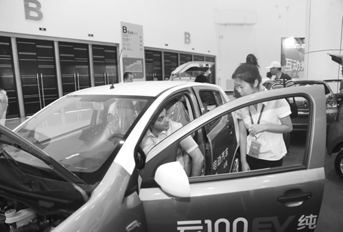 昨日上午,幾輛紅、白、藍色的純電動車被參觀者團團圍住,很多人最先是被這些車靚麗的外形所吸引,而當看到掛在車“屁股”上的充電線后,更令人感到驚訝,充電線的一端竟然是一根三相插頭。