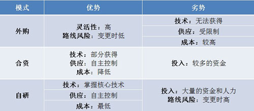 下面我們就分析一下車企和電池廠的三種模式的優劣勢對比,來把握其中的規律。在下表中簡單列出三種模式優劣勢的對比,發現三種模式各具優劣勢。