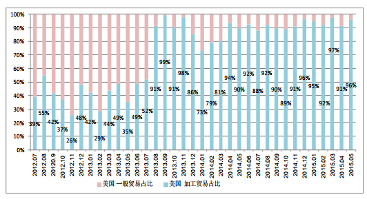 圖5 2015年5月份國別按加工貿易方式進口占比 數據來源:海關